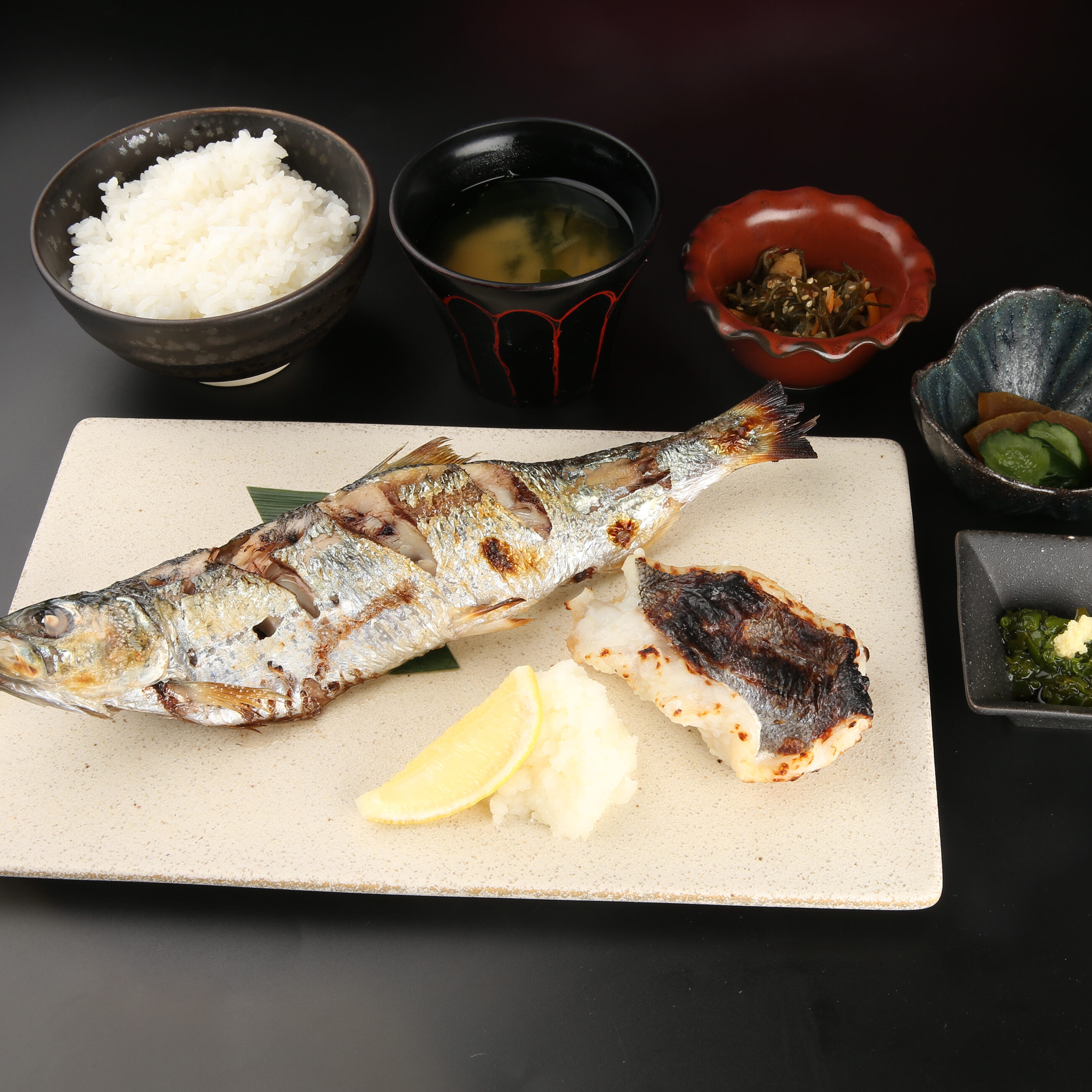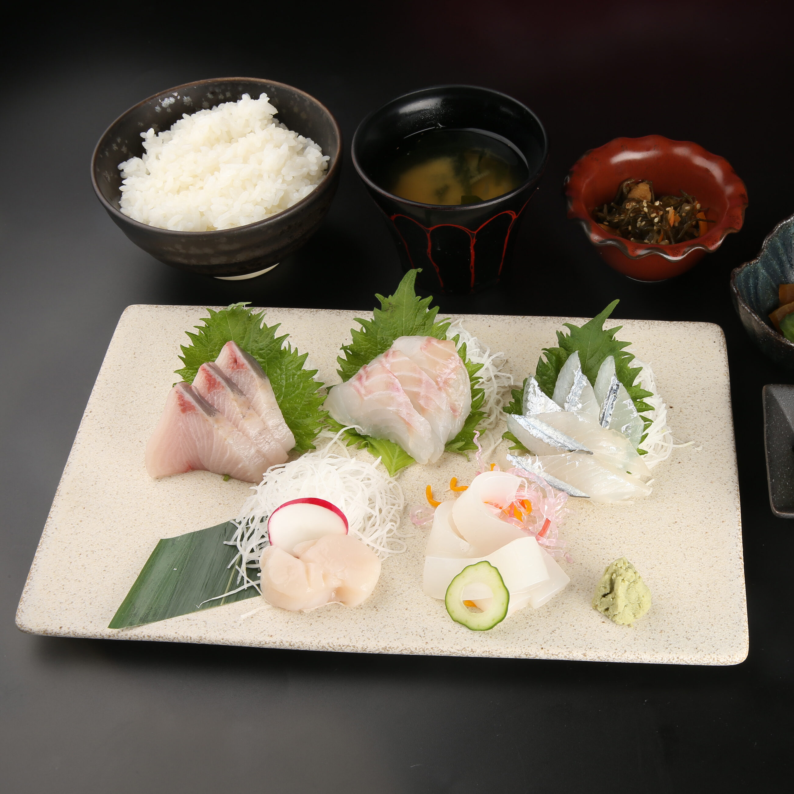 その日水揚げされた当店名物の刺身盛り合わせと焼き魚が付いた欲張り定食!!